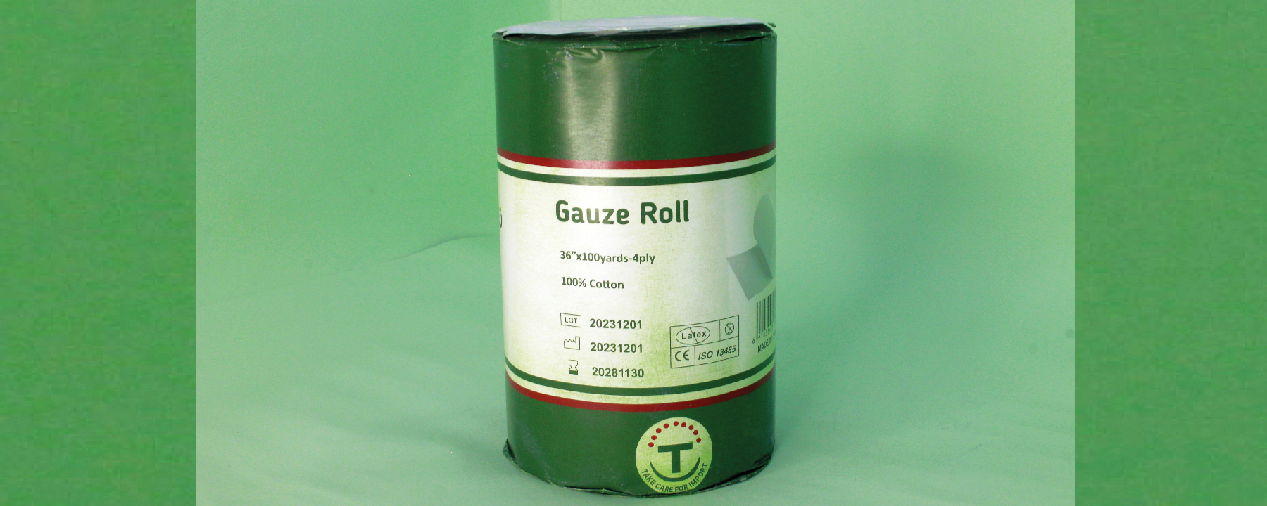 The GAUZE ROLL is a medical dressing used for covering and bandaging wounds. It comes in a long roll of cotton gauze, making it suitable for applications that require extended lengths of dressing, such as covering large wounds or for use as an absorbent material. The gauze is highly absorbent, helping to keep the wound dry and clean. It is commonly used in hospitals, clinics, and for everyday medical practices.