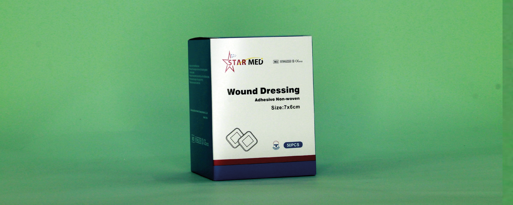 Medical dressing used to cover wounds post-surgery. Features self-adhesive backing for easy application, promotes airflow, and protects the wound from contamination.